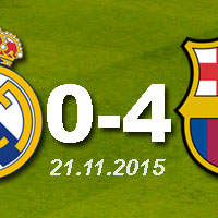 Spielbericht: Saison 2015-2016, 21.11.2015, Liga BBVA, 12. Spieltag, Real Madrid 0 – 4 FC Barcelona. Tore: Luis Suárez (11′, 74′), Neymar (39′), Iniesta (53′).