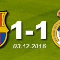 Spielbericht: Saison 2016-2017, 03.12.2016, Primera División, 14. Spieltag, FC Barcelona 1 – 1 Real Madrid. Tore: L. Suárez (53′), S. Ramos (90′).
